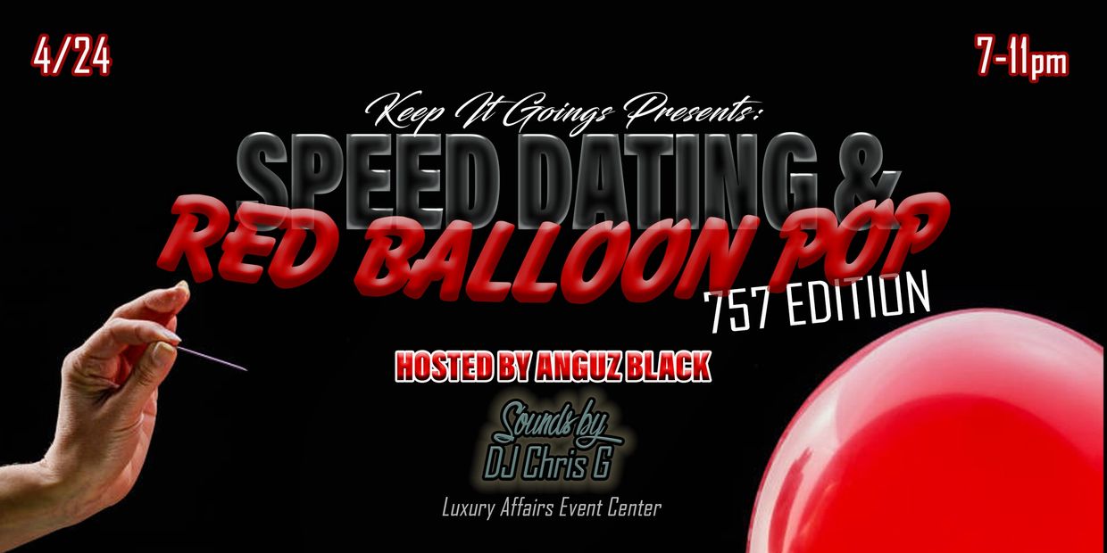 Welcome to Speed Dating & Red Balloon Pop - 757 Edition! Get ready for a fun evening of meeting new people in person. Join us for a unique experience where you can **connect** with others in a fast-paced dating setting. The added twist? You'll be popping red balloons with surprises inside along the way! It's a great opportunity to **mix** and **mingle** while enjoying a playful atmosphere. Don't miss out on this exciting event!